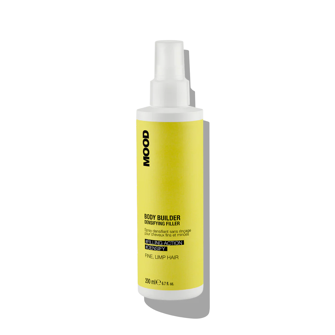 Um feinem Haar Fülle und Dichte zu verleihen, probieren Sie MOOD Body Builder Densifying Filler, das Leave-in-Spray-Serum, das die Haarfaser aufpolstert, das Volumen erhöht und das Haar vor oxidativem Stress und äußeren Einflüssen schützt.