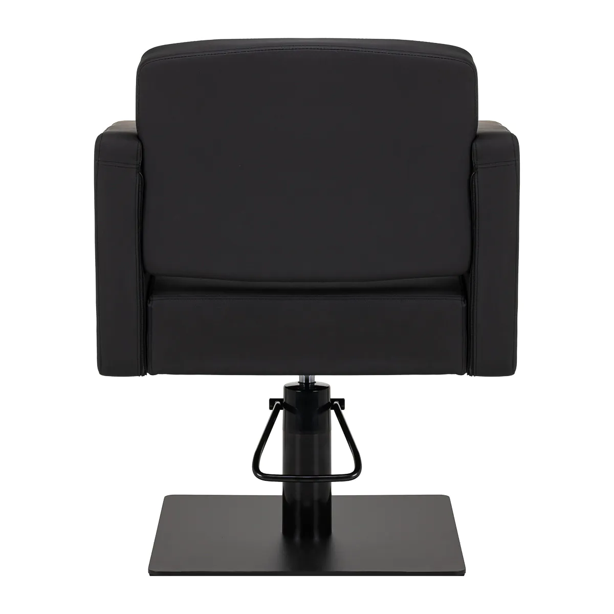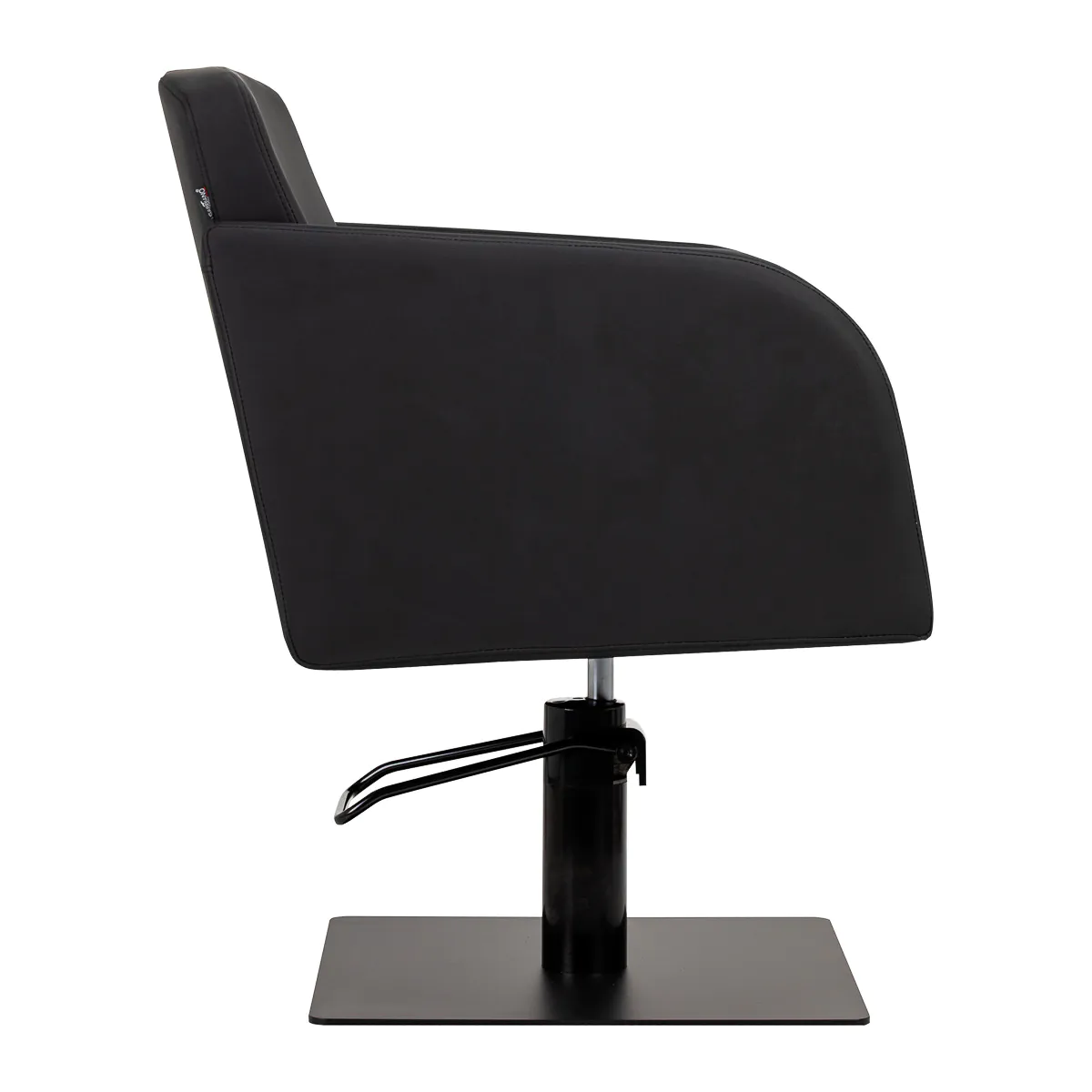 Minimalismus in eleganter Edition Der Friseurstuhl Gabbiano Elda verbindet minimalistisches Design mit Funktionalität und Komfort des täglichen Gebrauchs. Stromlinienförmige Linien verleihen ihm ein leichtes und modernes Gefühl, während ein stabiler, quadratischer Sockel in mattem Schwarz seinen Stil zusätzlich unterstreicht. Weiche Schaumstofffüllung in Kombination mit angenehm anzufassendem Kunstleder in Schwarztönen sorgt für Komfort auch bei langen Behandlungen. Sorgfältig ausgewählte Materialien garantieren Langlebigkeit, Feuchtigkeitsbeständigkeit und einfache Reinigung. Der Sessel fügt sich perfekt in moderne und klassische Arrangements ein und unterstreicht den professionellen Charakter des Salons.