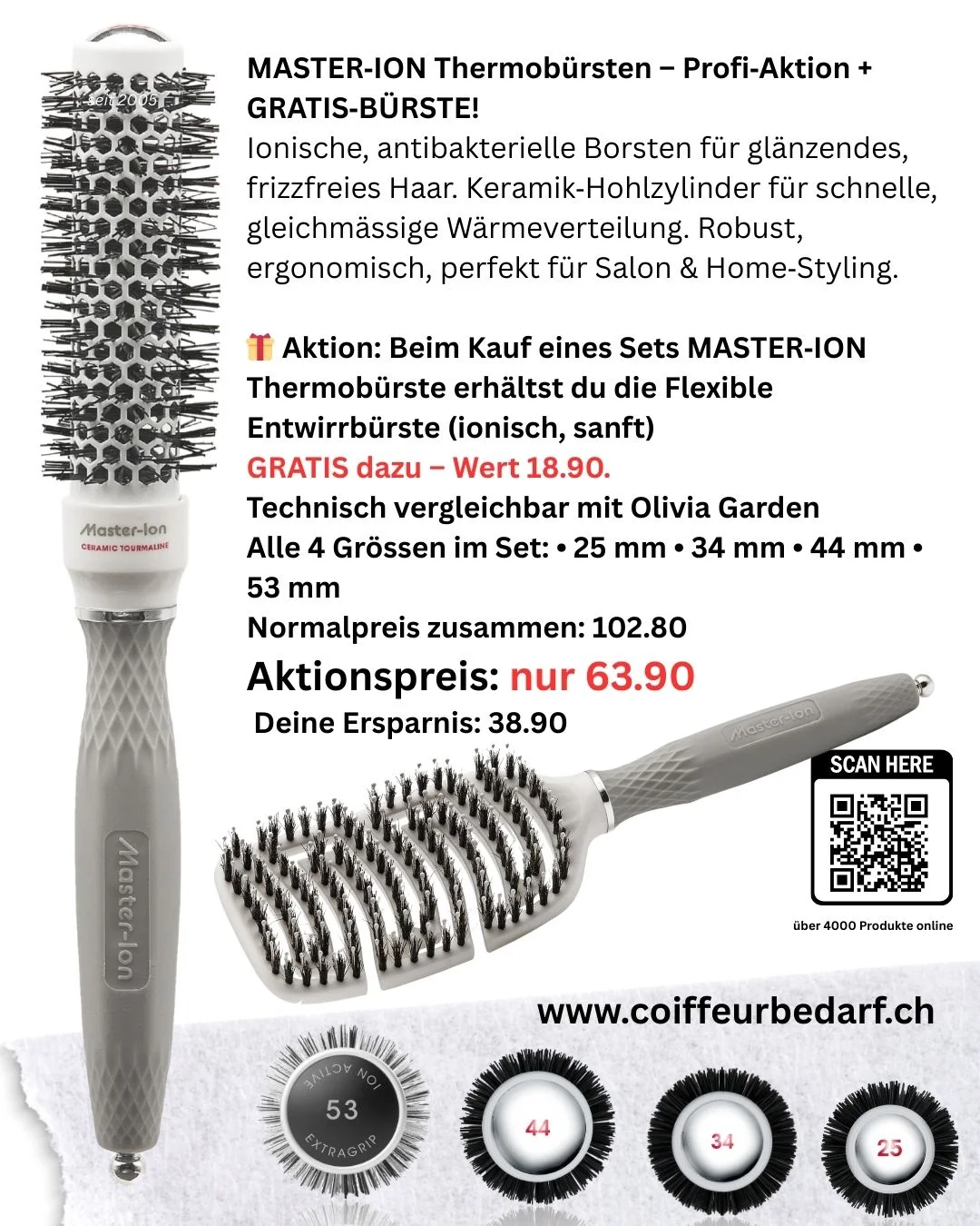 Aktion: Beim Kauf eines Sets MASTER‑ION Thermobürste erhältst du die Flexible Entwirrbürste (ionisch, sanft)