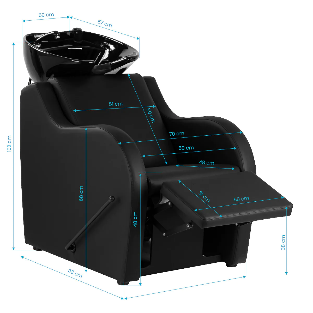 Die Friseurwaschbecke Conrad mit verstellbarer Fussstütze ist ein praktisches und stilvolles Gerät für den Friseursalon. Es ermöglicht Ihnen, grundlegende Behandlungen wie Waschen, Färben oder Haarpflege bequem durchzuführen. Das integrierte Design sorgt für Komfort sowohl für den Stylisten als auch für den Kunden, und das moderne Design unterstreicht den Charakter des Interieurs. Die Fussstütze kann verstellt werden, um den Komfort bei jeder Behandlung weiter zu erhöhen.