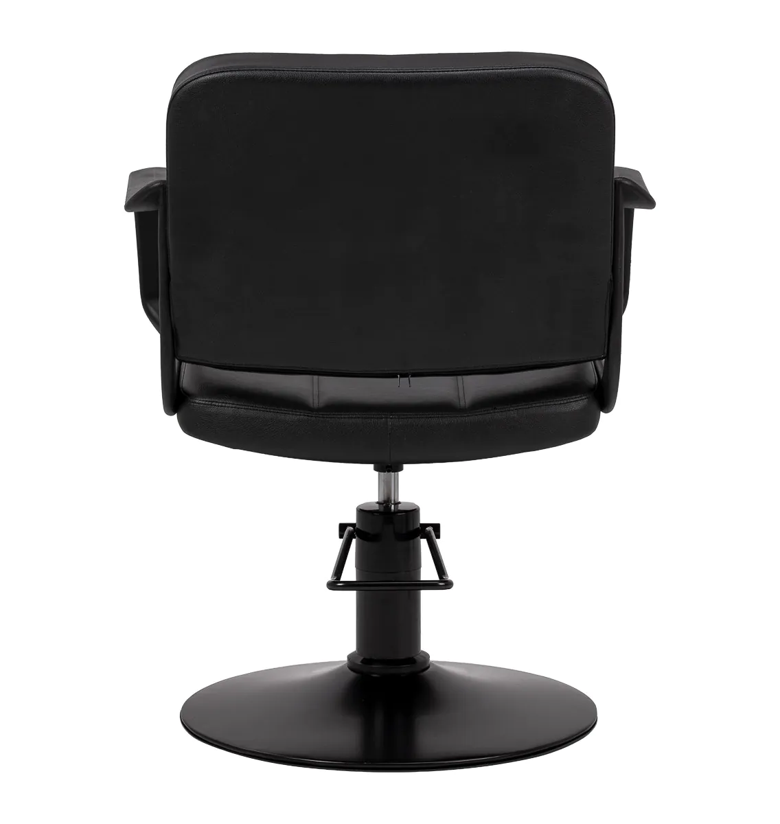 Die ergonomisch geformte Rückenlehne bietet stabilen Halt, besonders bei längeren Behandlungen. Die offene, funktionale Form des Stuhls ermöglicht einen ungehinderten Zugang zu Nacken, Hinterkopf und Haaransatz – ideal für präzises Schneiden, Färben und Stylen.