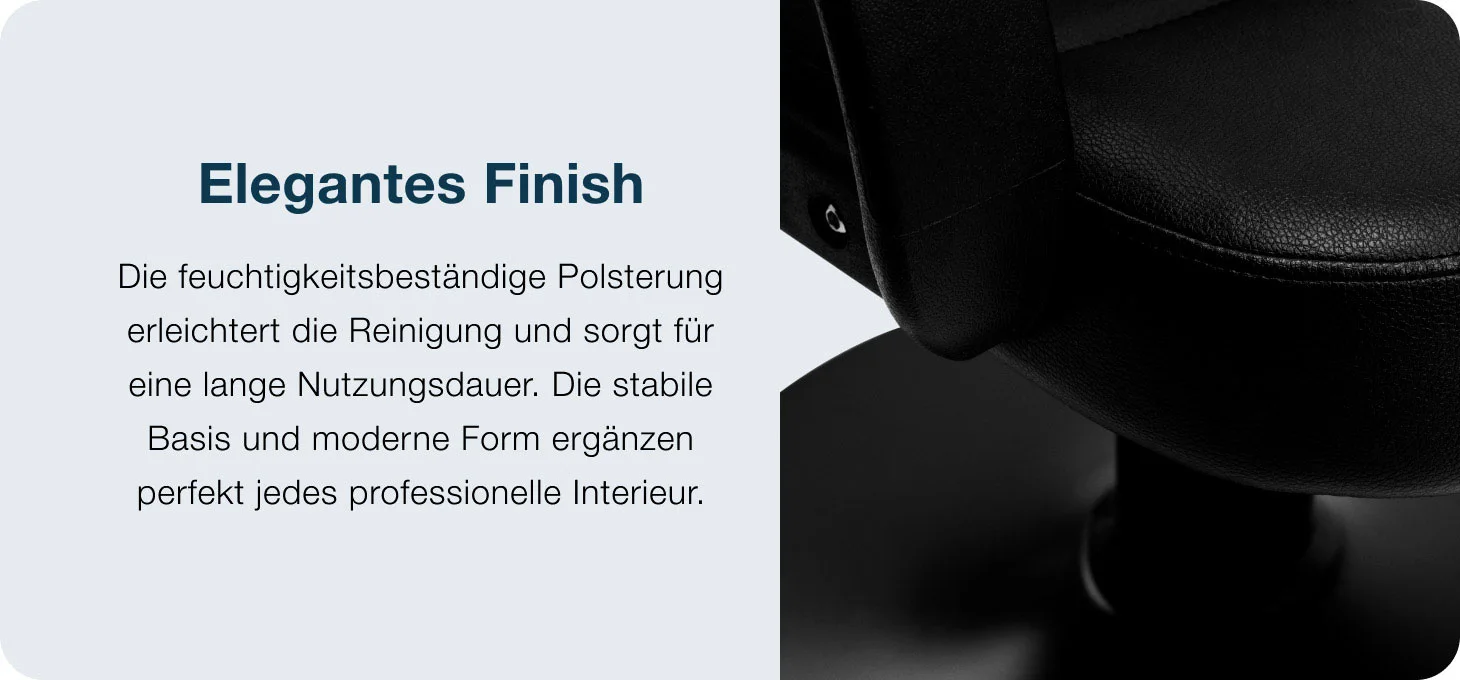 Die solide Verarbeitung und durchdachte Konstruktion garantieren Langlebigkeit und ein angenehmes Sitzgefühl – ein zuverlässiger Begleiter im täglichen Salonbetrieb.
