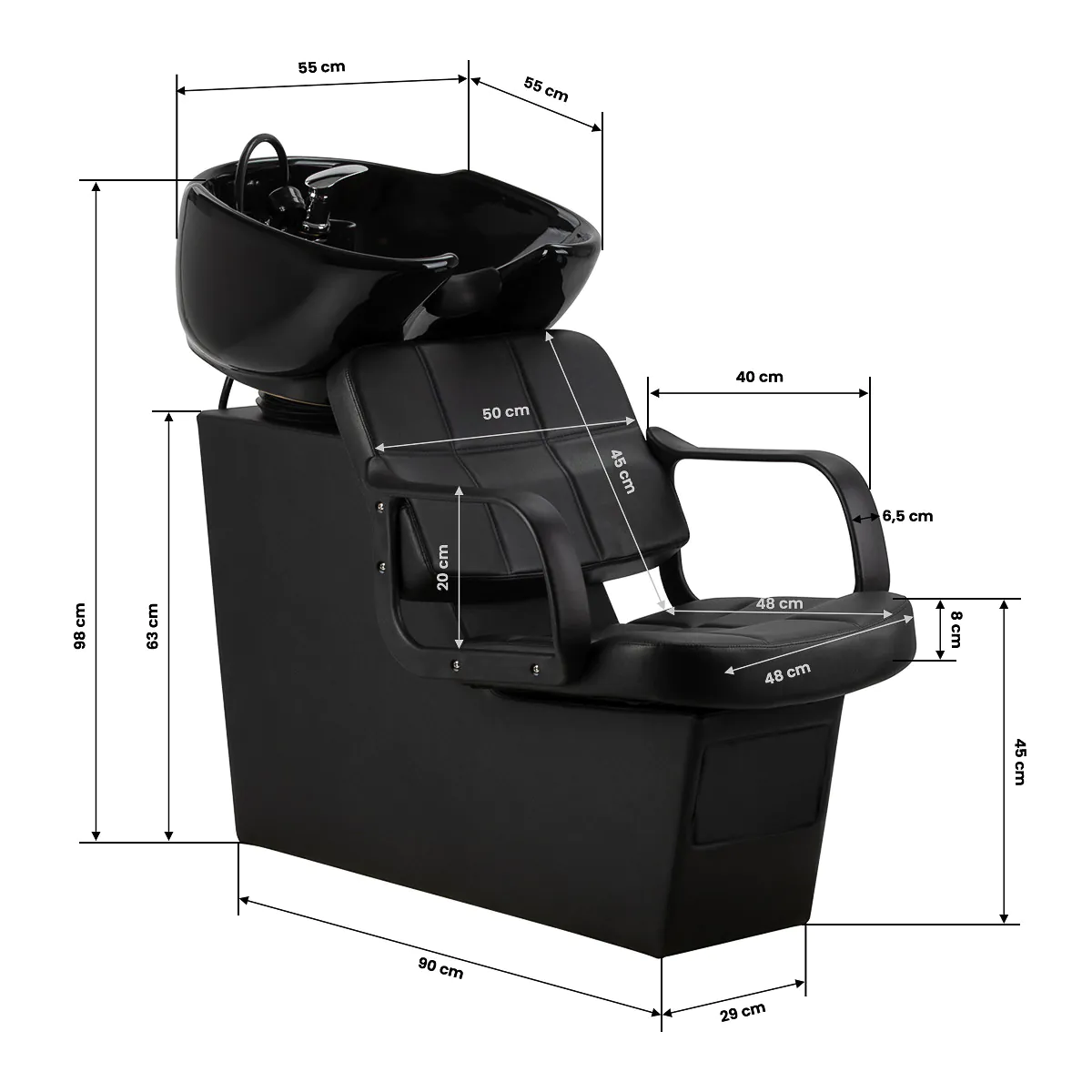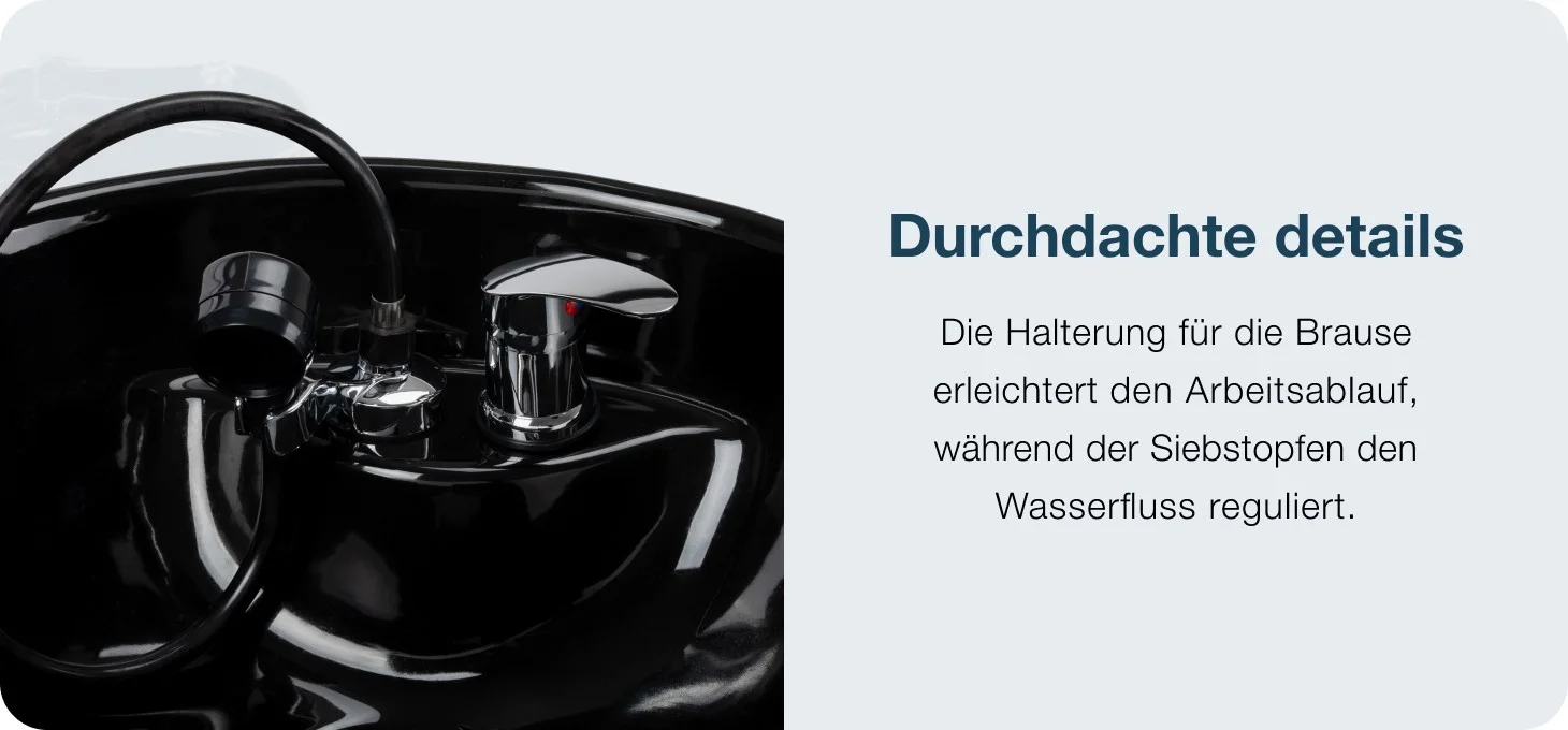 Die Coiffeur Friseur Waschanlage Kamrad verbindet ein modernes, minimalistisches Design mit einer stabilen, integrierten Bauweise. Die klare, geometrische Form fügt sich perfekt in zeitgemäße Coiffeur‑ und Barbersalons ein. Der ergonomische Stuhl mit bequemer Rückenlehne und konturierten Armlehnen sorgt für maximalen Kundenkomfort während jeder Behandlung.
