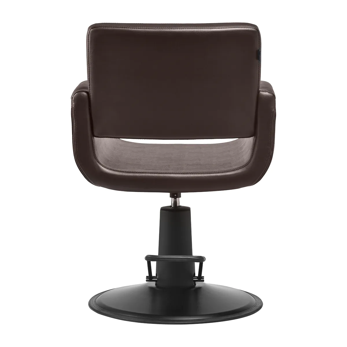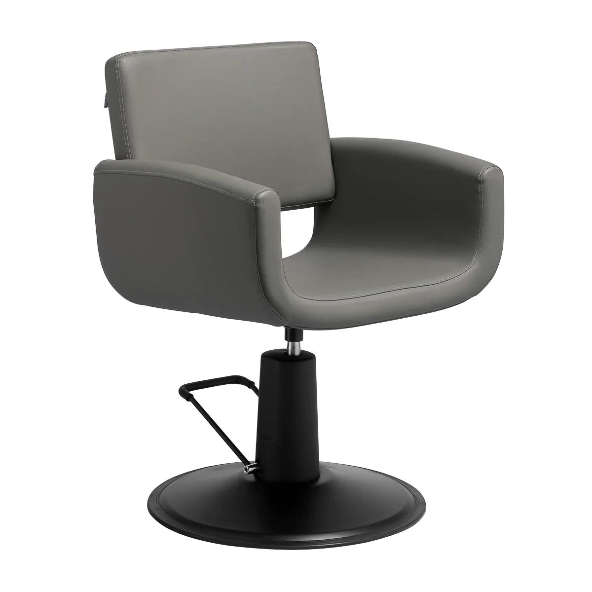 Ergonomische Armlehnen unterstützen die korrekte Haltung des Kunden, sorgen für Komfort und erleichtern präzise Schnitte und Stylings. Der Vollrotationsmechanismus sorgt für mehr Beweglichkeit und Bewegungsfreiheit und macht die Arbeit des Friseurs reibungsloser, effizienter und weniger belastend. Eine praktische Öffnung zwischen Rückenlehne und Sitz erleichtert die Sauberkeit und das schnelle Entfernen von Haaren an schwer zugänglichen Stellen. Dadurch ist die Vorbereitung des Standes für den nächsten Kunden effizient und hygienisch.