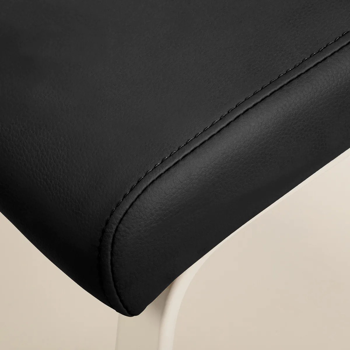 Die Kunstlederpolsterung in Schwarztönen ist feuchtigkeitsbeständig, pflegeleicht und ideal für den intensiven Salonalltag. Höhenverstellbare Füße ermöglichen eine präzise Nivellierung auch auf unebenem Boden und erhöhen die Stabilität des gesamten Arbeitsplatzes.