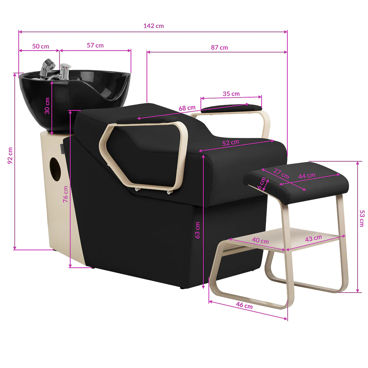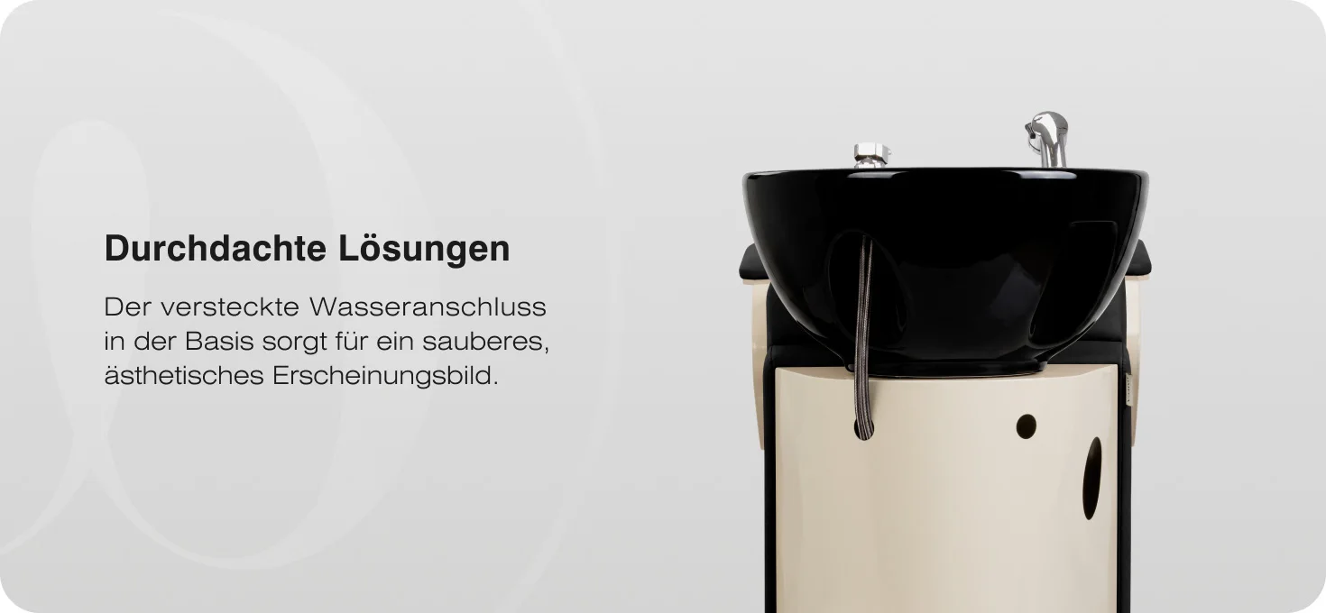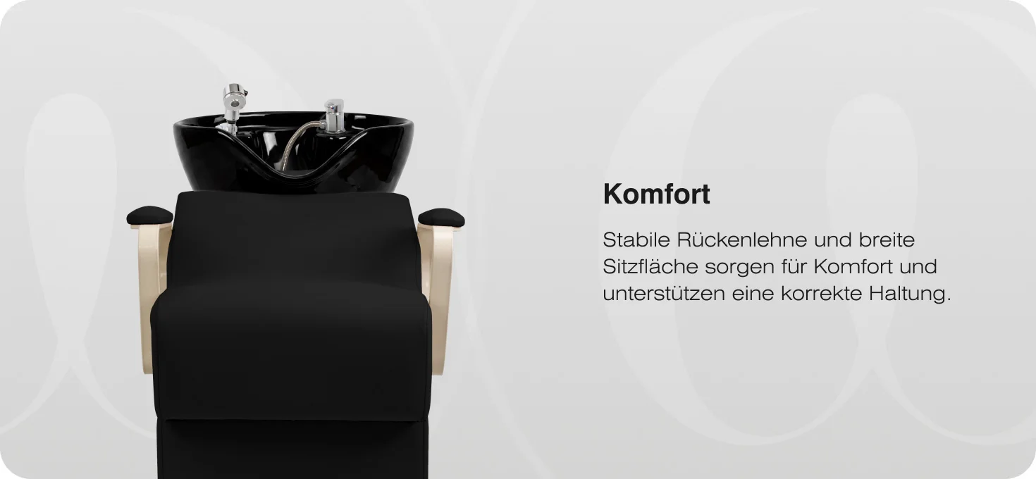Der geformte Rand bietet eine stabile Kopfstütze, während die integrierte Kopfauflage eine angenehme Position während der Haarwäsche ermöglicht. Eine Silikonauflage mindert das Kältegefühl und erhöht den Komfort zusätzlich.