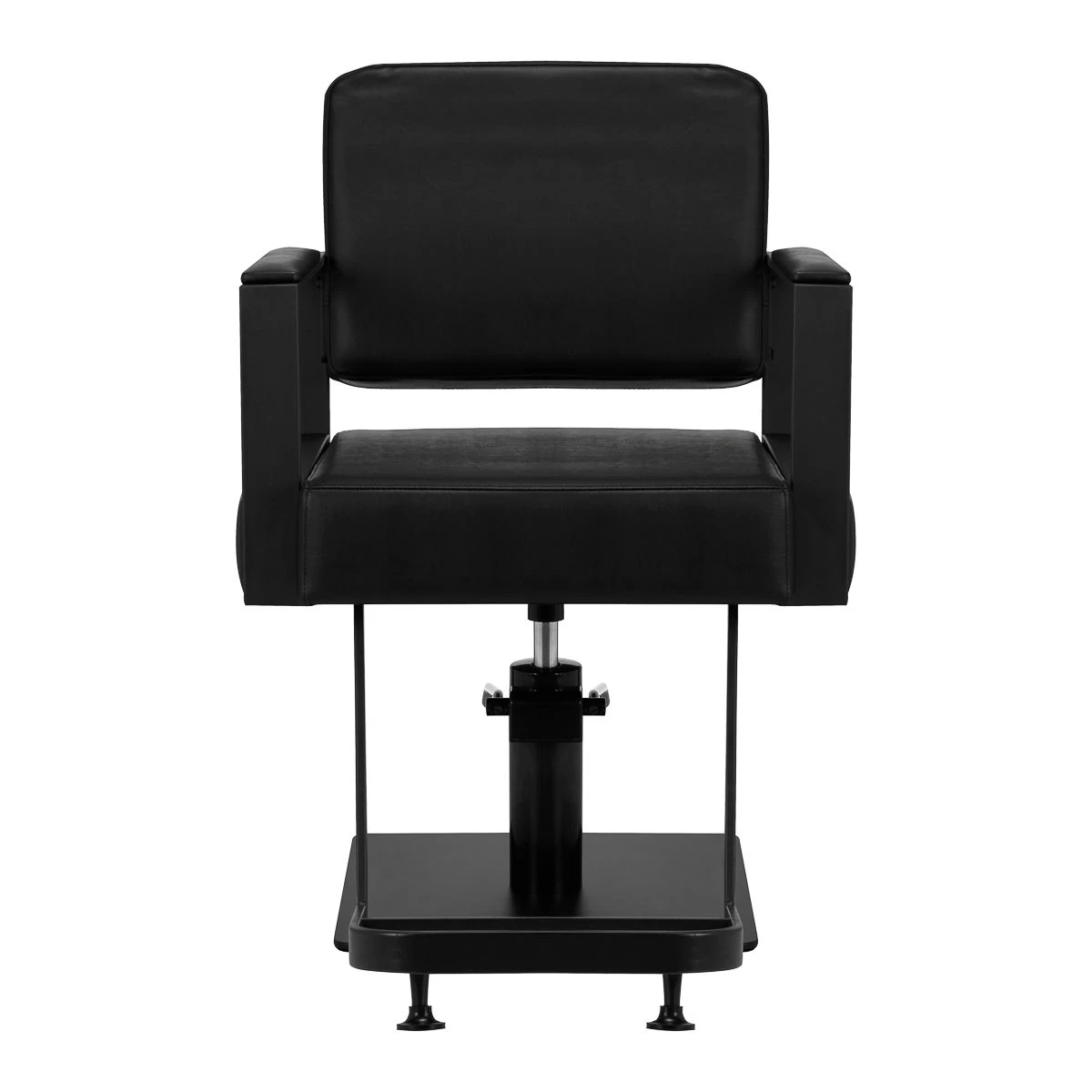 Lösungen, die Ihnen die Arbeit erleichtern Die Ausstattung des Stuhls mit einem Volldrehmechanismus macht die Arbeit des Friseurs effektiver und komfortabler. Eine solide, flache, quadratische Basis garantiert Stabilität während des Gebrauchs. Die mattierte, glatte Oberfläche verleiht dem Element ein elegantes Aussehen und erleichtert die Reinigung . Ein bequemer Sitz mit Schaumstofffüllung sorgt für hohen Bedienkomfort , auch bei stundenlangen Behandlungen. Geometrische, teilweise gepolsterte Armlehnen ermöglichen die korrekte Positionierung der Schultern des Klienten – das bedeutet, dass er seinen Kopf nicht in seinen Schultern vergräbt oder nachgibt – was die Durchführung präziser Behandlungen, einschließlich Haarschnitte, deutlich erleichtert.
