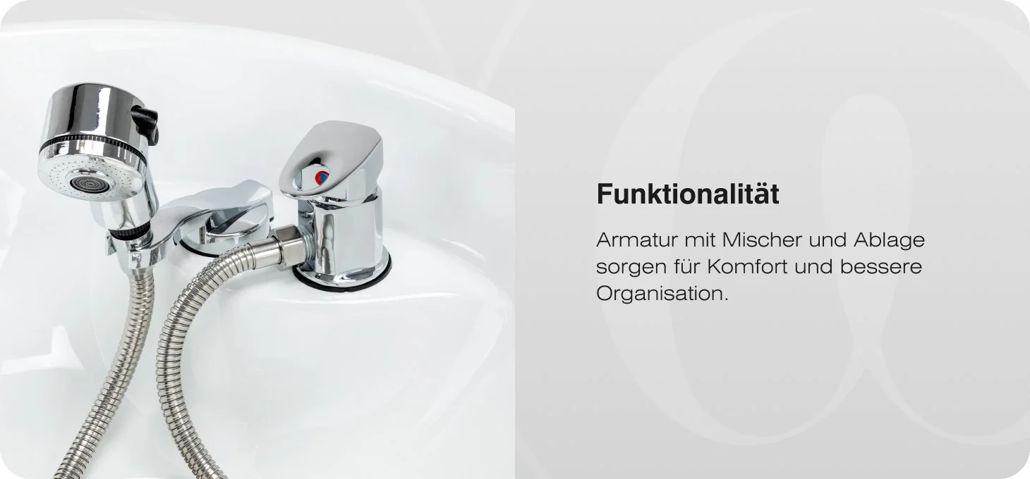 Durchdachte Details für den Salonalltag Für einen reibungslosen Arbeitsablauf ist das Coiffeur Water mit praktischen Funktionen ausgestattet: