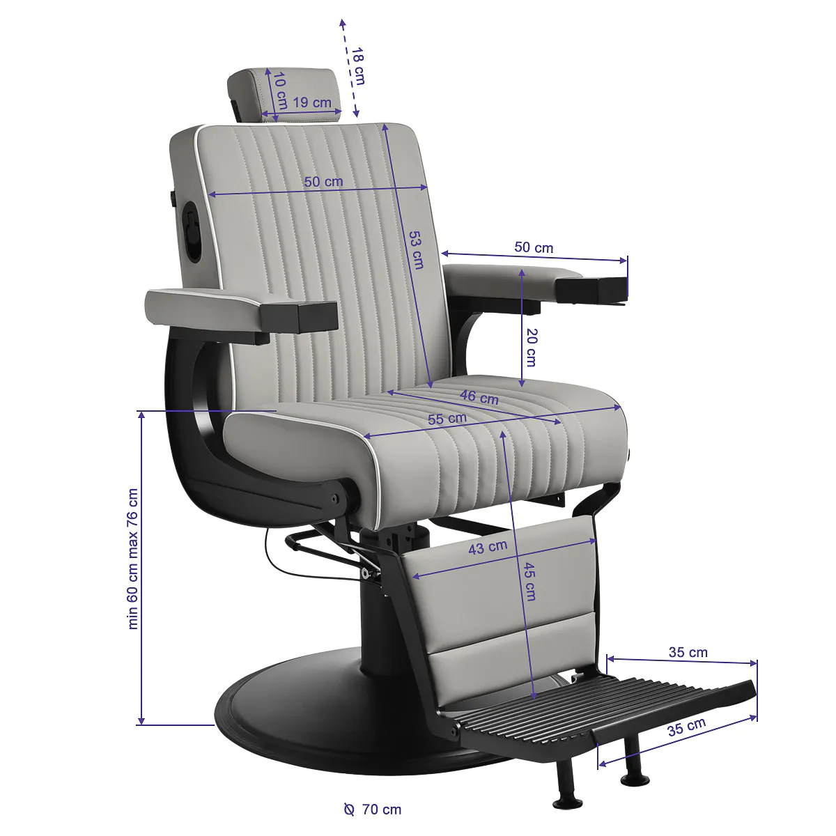 Herren- Barber Stuhl Lars , GRAU mit schwarzem Gestell ohne Naht hinten