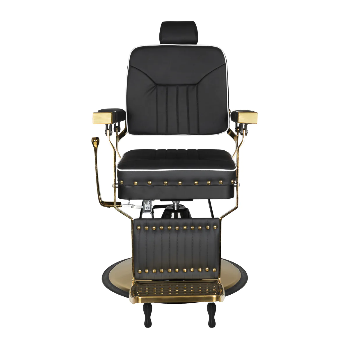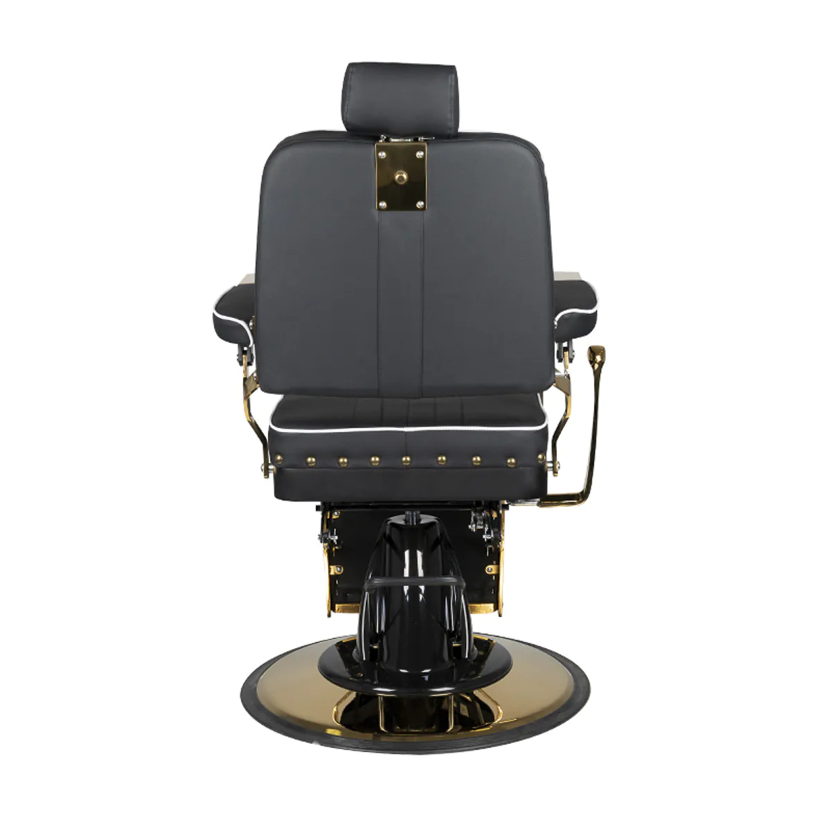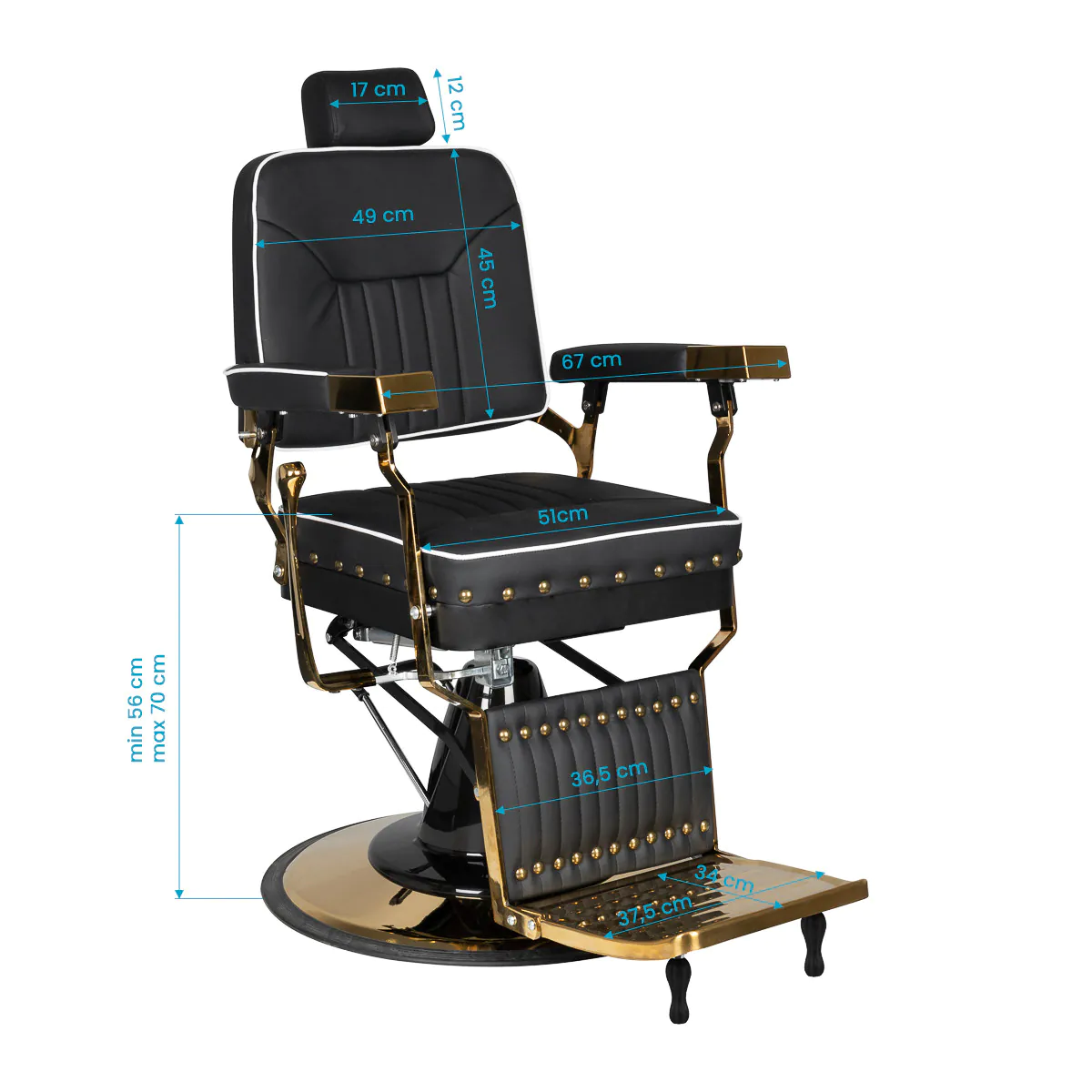 Neuheit in unserem Angebot - Herren Barberstuhl Barberstuhl Fredy gold schwarz. Dies ist ein modernes, perfekt gefertigtes Möbelstück mit Motorrad-Details.