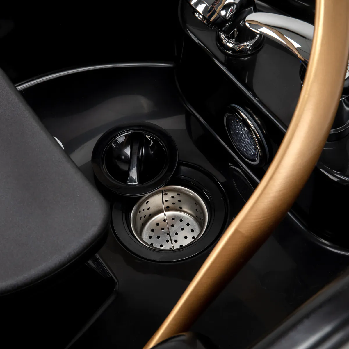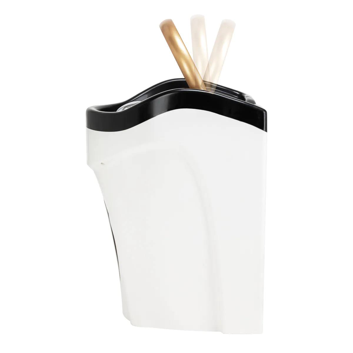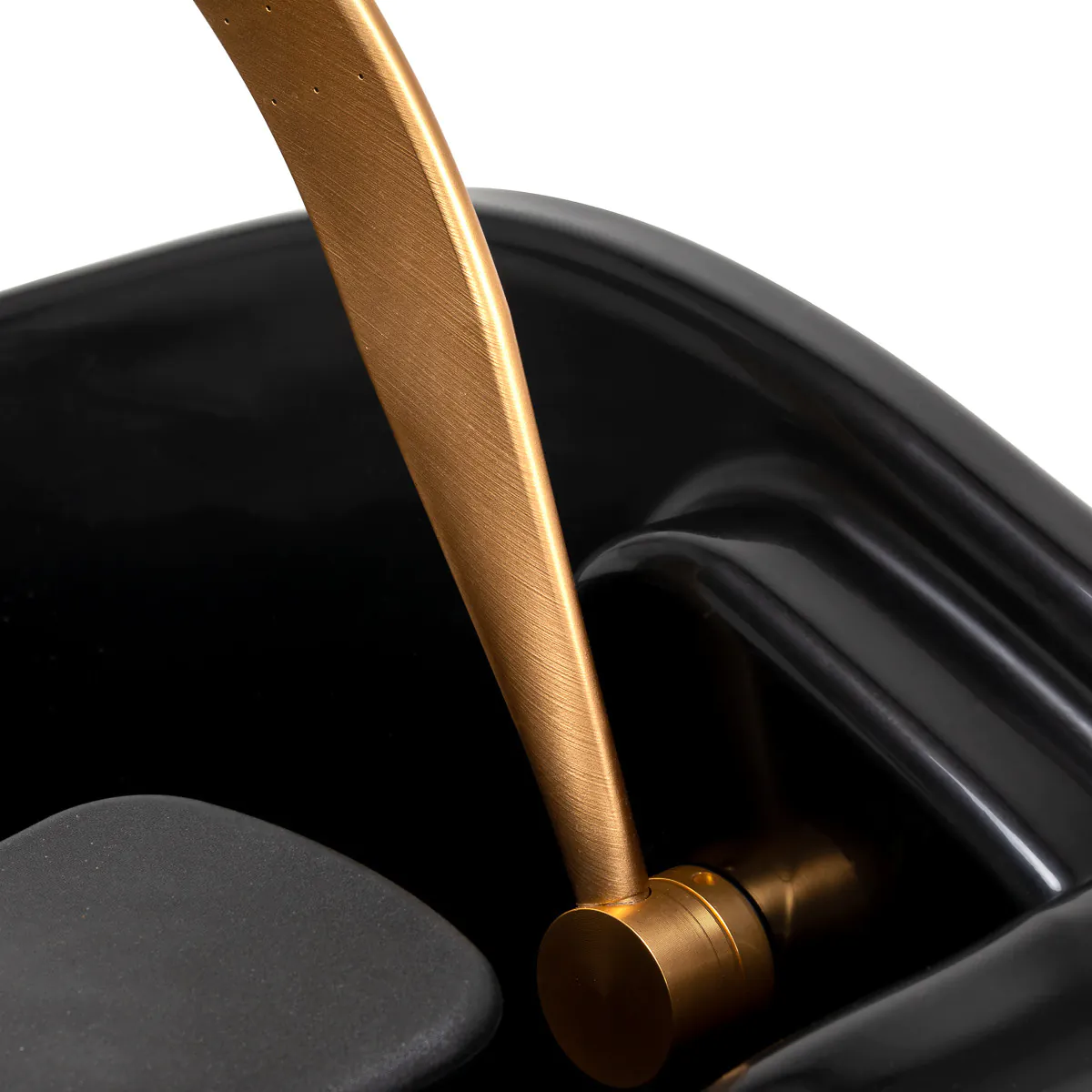 Praktisches, tiefes Waschbecken Das tiefe, schwarze Kunststoffwaschbecken verhindert Spritzer und ermöglicht sauberes Arbeiten. Es ist langlebig, pflegeleicht und mit einer verstellbaren Kopfstütze ausgestattet. Ein integrierter Platz für die Handbrause und ein Stöpsel mit Sieb sorgen für optimale Hygiene und Organisation.
