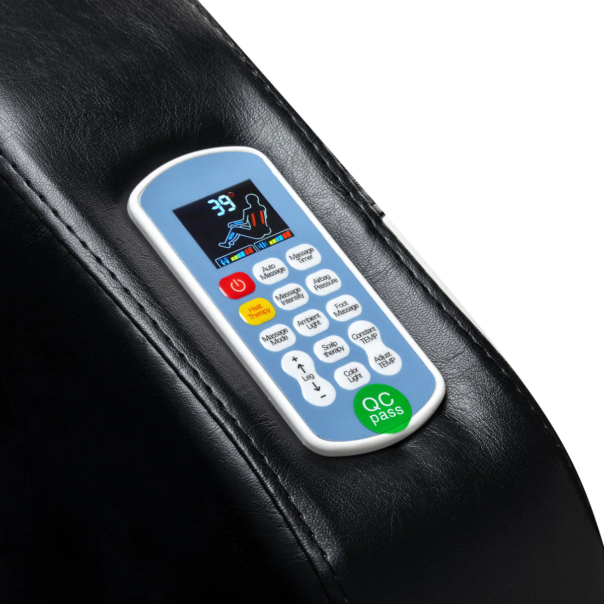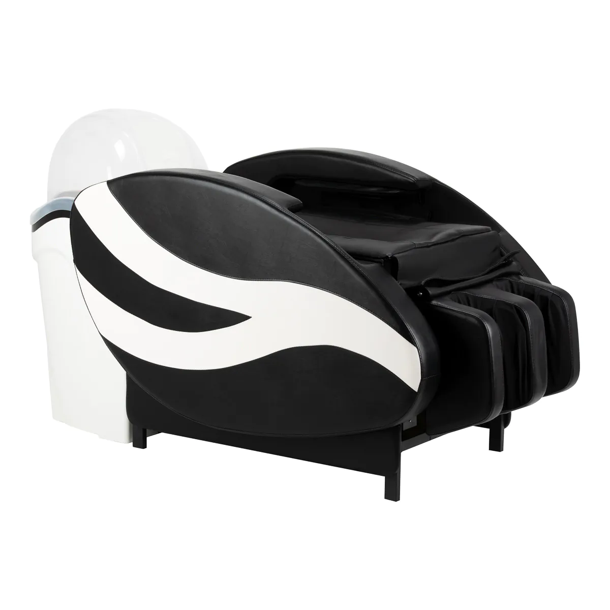Verstellbare Fußstütze mit Wadenmassage Die höhenverstellbare Fußstütze sorgt für eine ergonomische Position und erhöht den Komfort während der Behandlung. Die integrierte Druckmassage für die Waden fördert die Durchblutung und verstärkt den Entspannungseffekt.