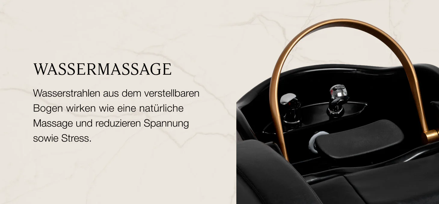 Ein intelligentes Kreislaufsystem nutzt das Wasser effizient wieder und sorgt für eine kontinuierliche, komfortable Behandlung. Die Kombination aus Wasser, Wärme und Massage verbessert den Haarzustand und führt zu tiefer Entspannung.
