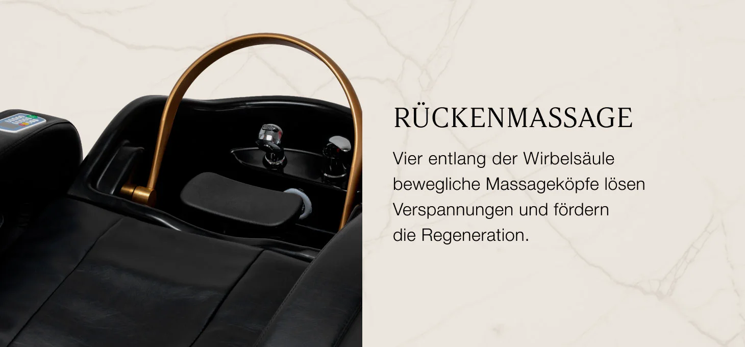 Wohltuende Rückenmassage Vier Massageköpfe bewegen sich entlang der Wirbelsäule und imitieren knetende und klopfende Handbewegungen. Die Behandlung löst Muskelverspannungen, fördert die Regeneration und sorgt für spürbare Entlastung und tiefe Entspannung.