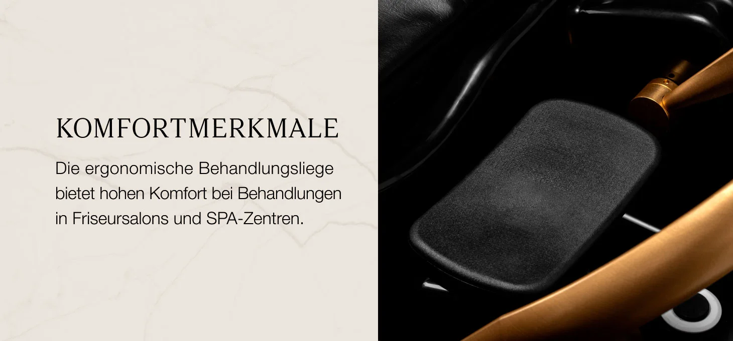 Elegantes Design & hohe Stabilität Die ergonomisch geformte Liege mit hochwertigem Kunstlederbezug bietet maximalen Komfort. Die stabile Konstruktion und das moderne Design unterstreichen den professionellen Charakter des Salons.
